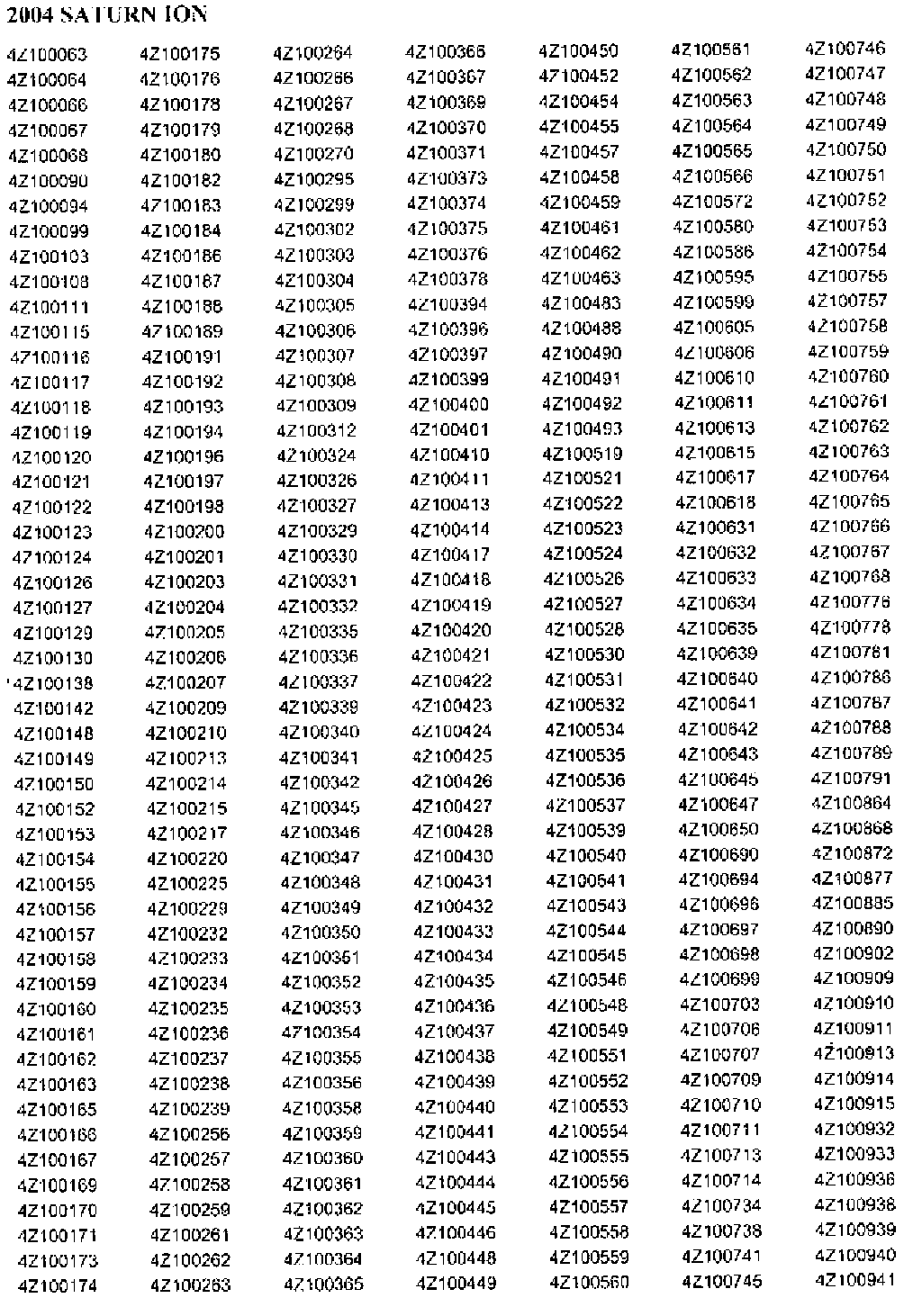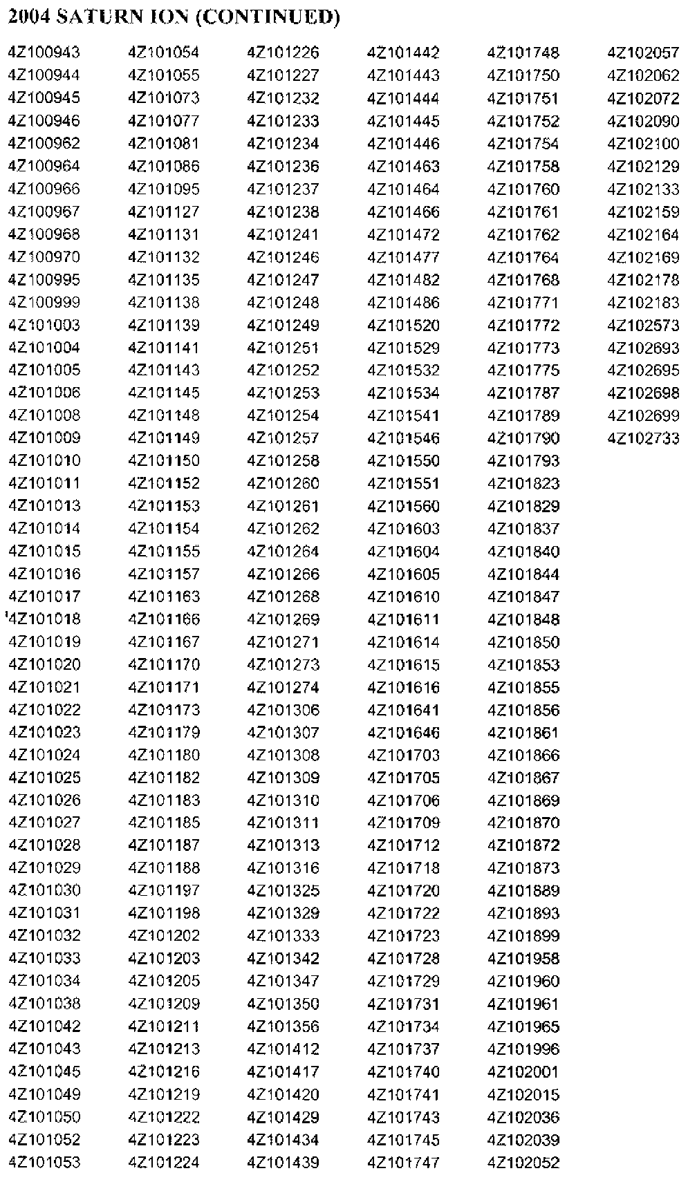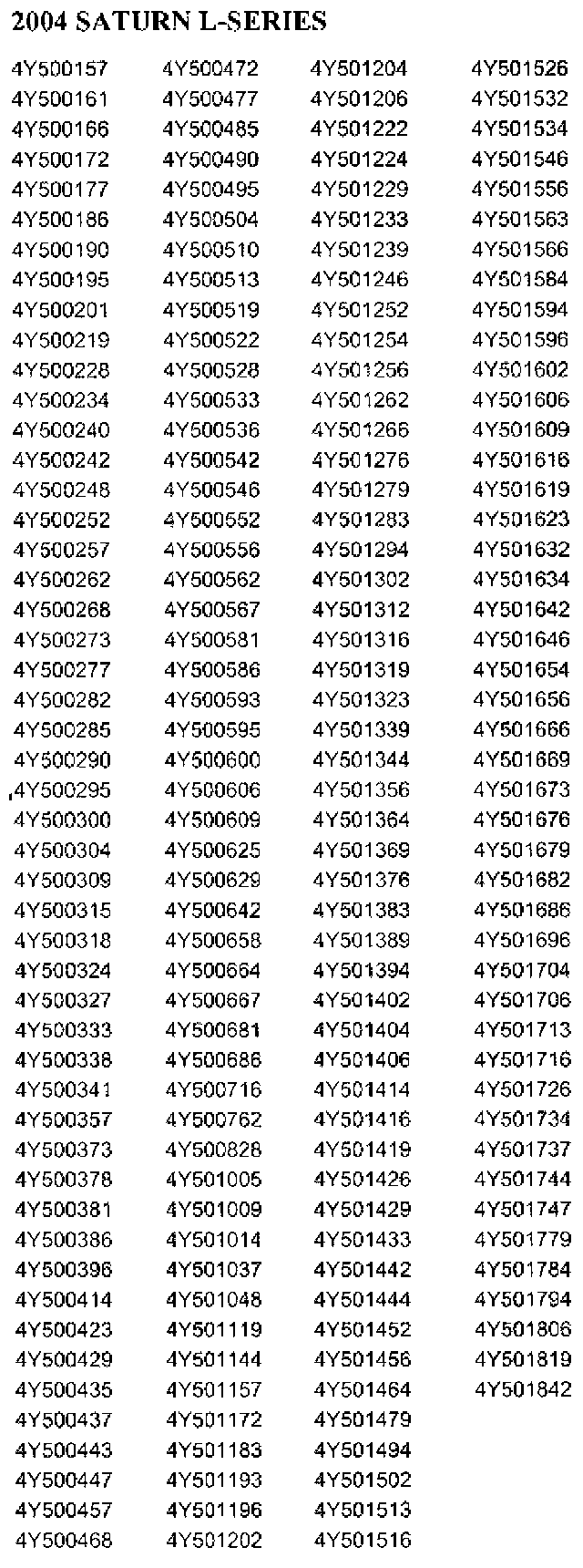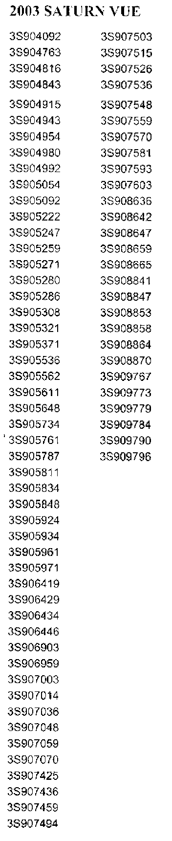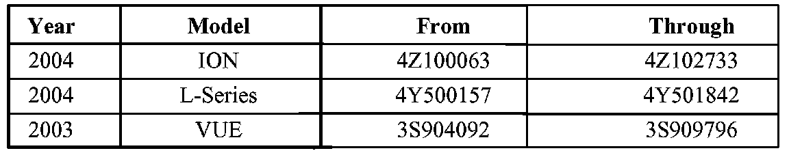 Only selected 2003 and 2004 model year Saturn vehicles equipped with a 2.2L (L61) engine within the VIN range shown will require this recall.