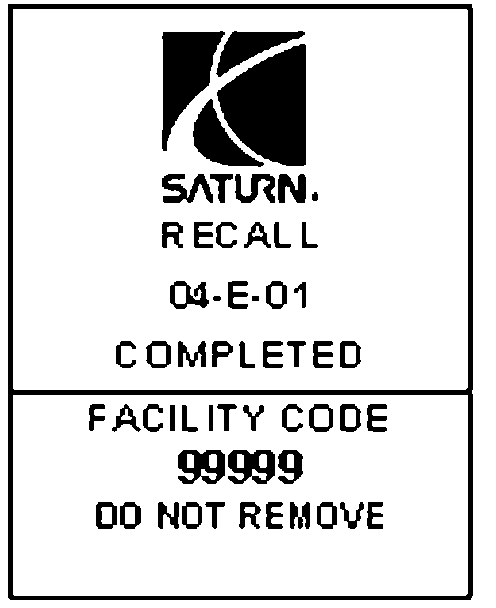 Upon completion of the recall, a Recall Identification Label and clear Protective Cover should be affixed on a clean, dry surface of the radiator core support in an area clearly visible when the hood is raised. Each label provides a space to print in ink (or type) the recall number (04-E-01) and the five (5) digit facility code of the retailer performing the recall service.
