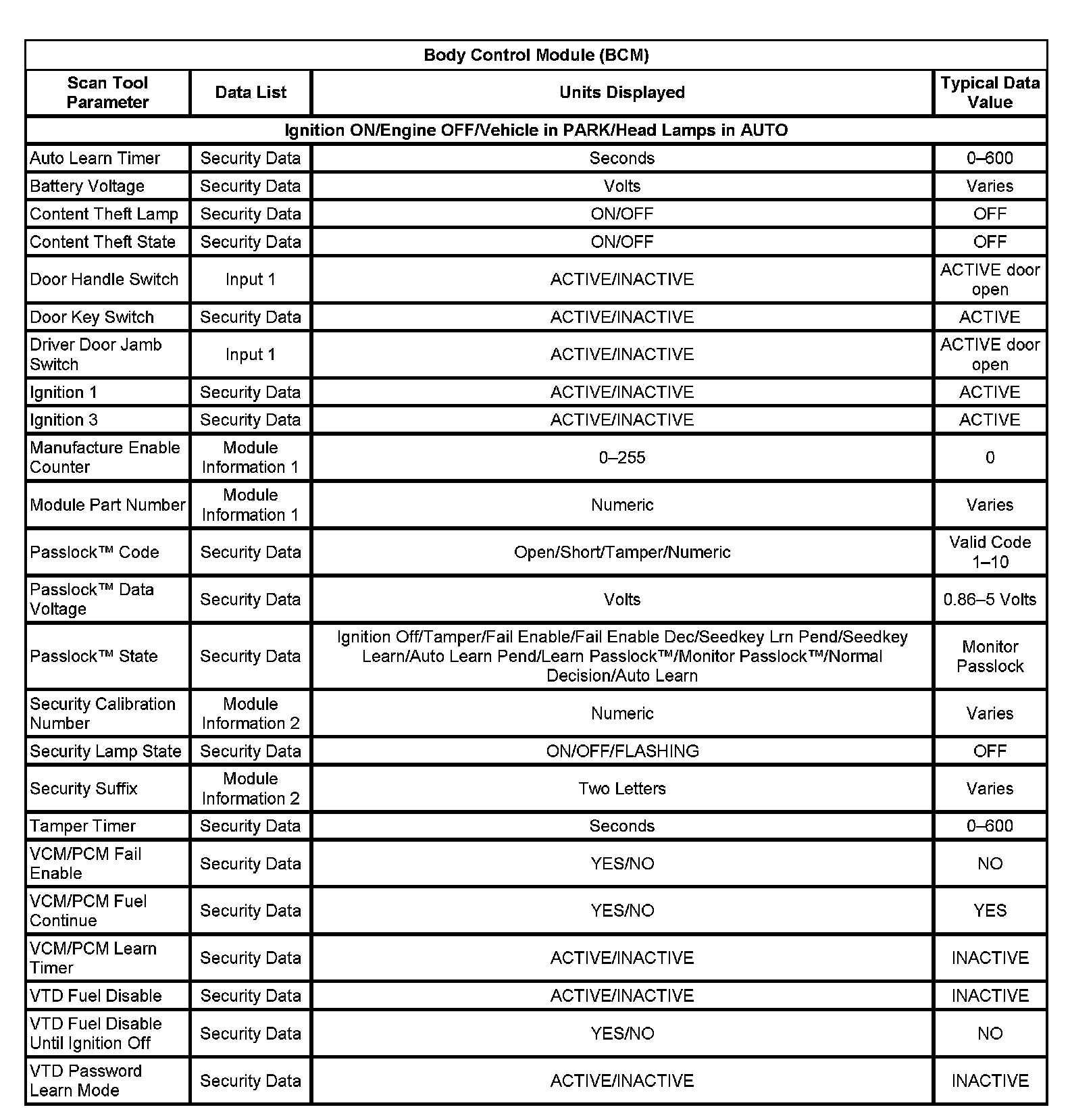 Body Control Module (BCM):
