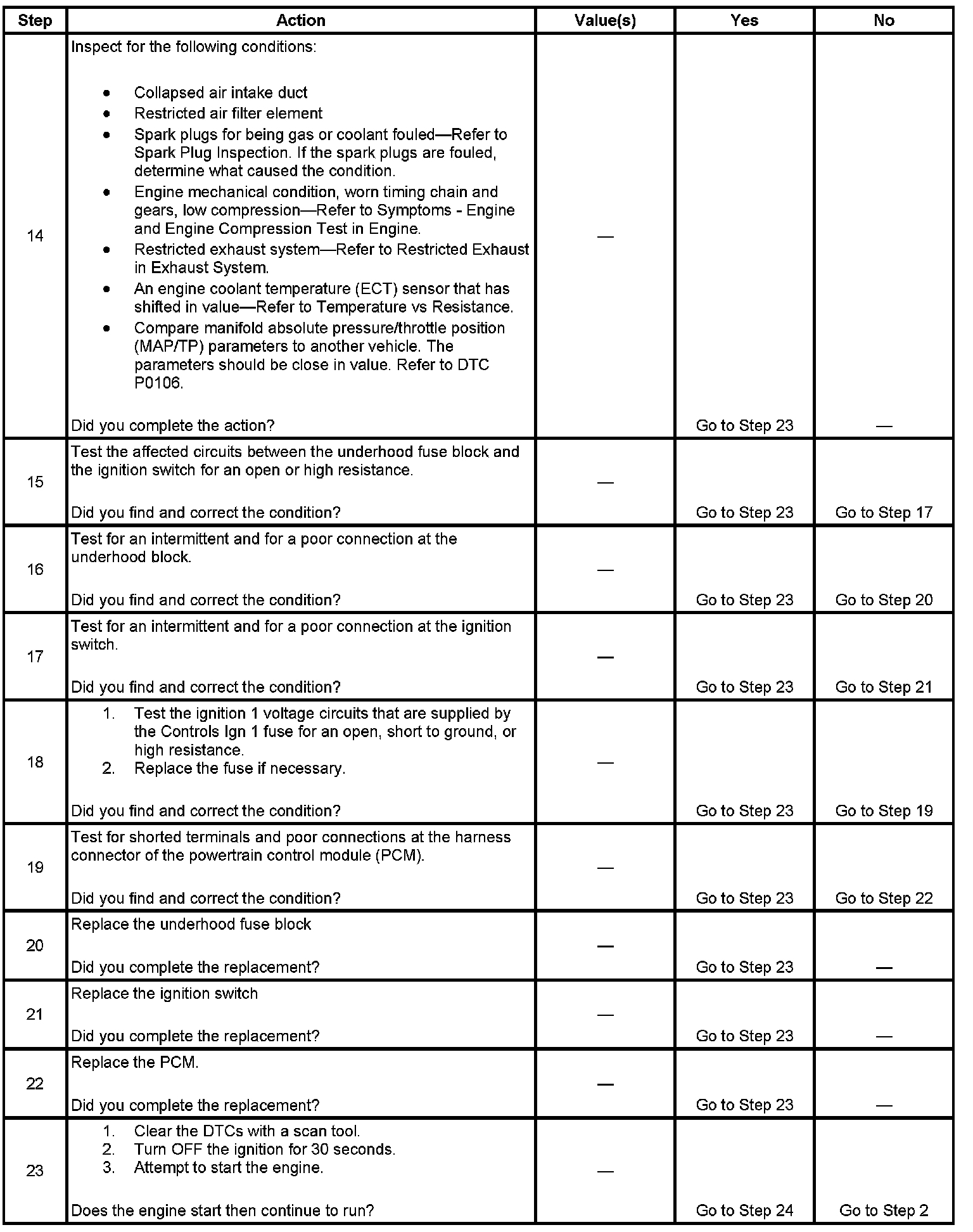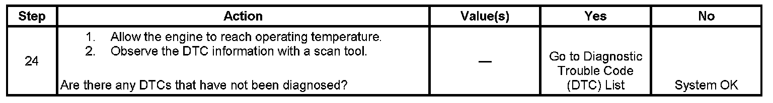 The Engine Cranks but Does Not Run diagnostic table is an organized approach to identifying a condition that causes an engine not to start. The Engine Cranks but Does Not Run diagnostic table directs the service technician to the appropriate system diagnosis.