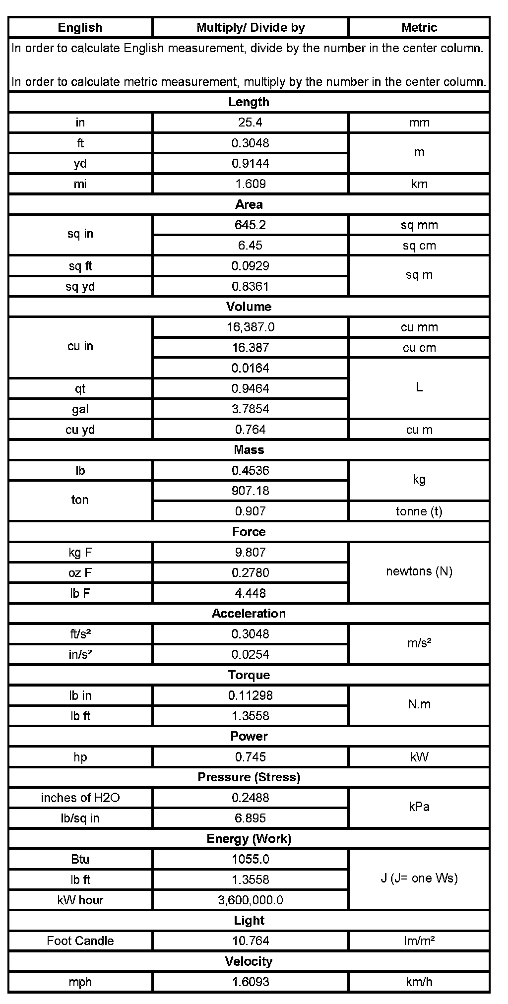 Conversion - English/Metric