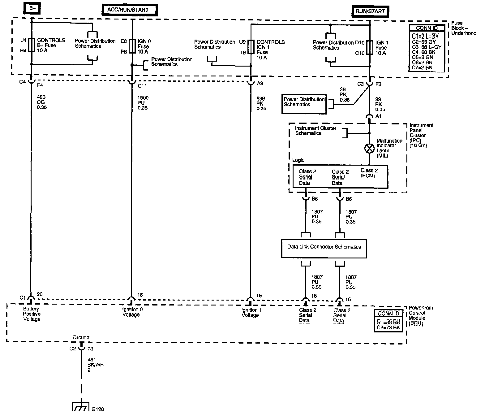 PCM Power, Ground, Serial Data, and MIL