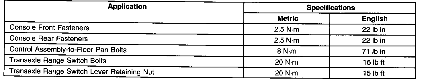 Torque Specifications: