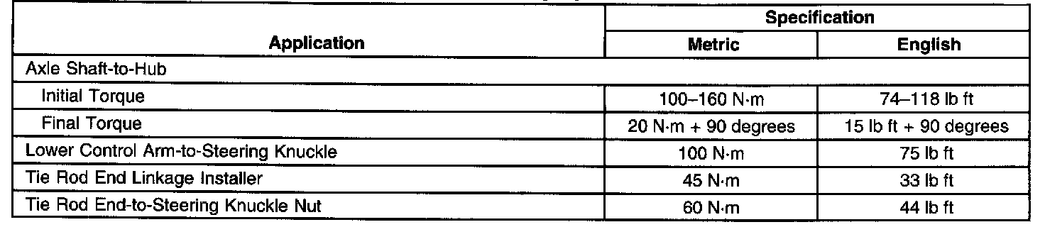 Torque Specifications: