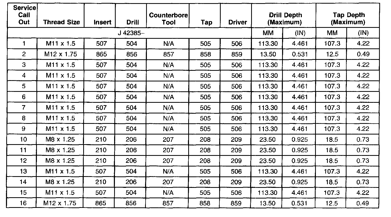 Thread Repair Specifications