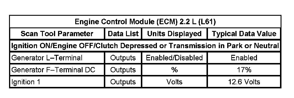 Scan Tool Data List - Engine Control Module (ECM)