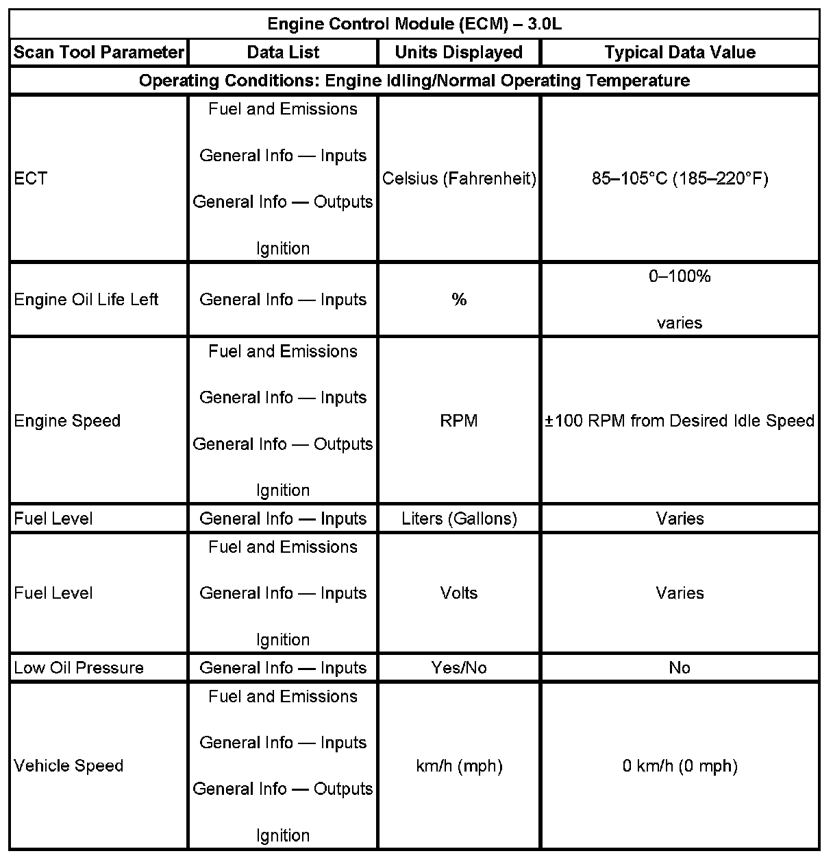 Scan Tool Data List - Powertrain Control Module (PCM)