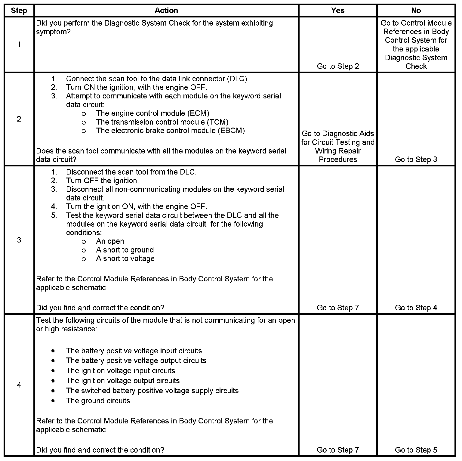 The keyword protocol utilizes a single wire bi-directional data line between the modules and the scan tool. The message structure is a request and response arrangement. Keyword serial data is used for scan tool diagnostics only. The modules do not exchange data on this circuit.