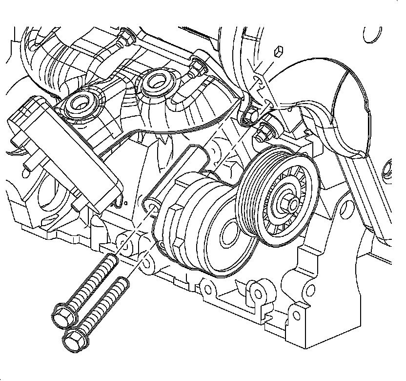 6. Install the belt tensioner and the attachment bolts.