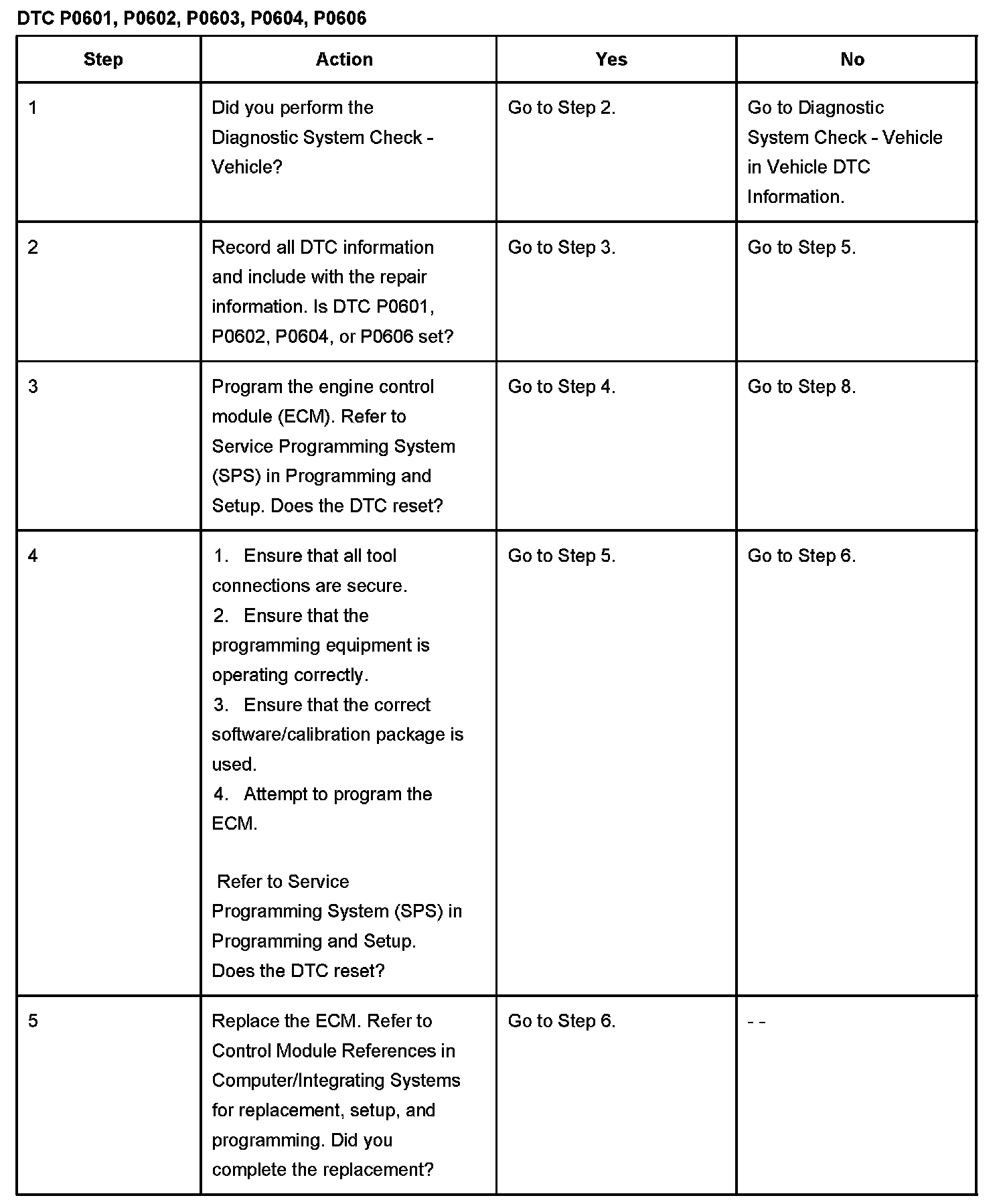 DTC P0601 - P0606