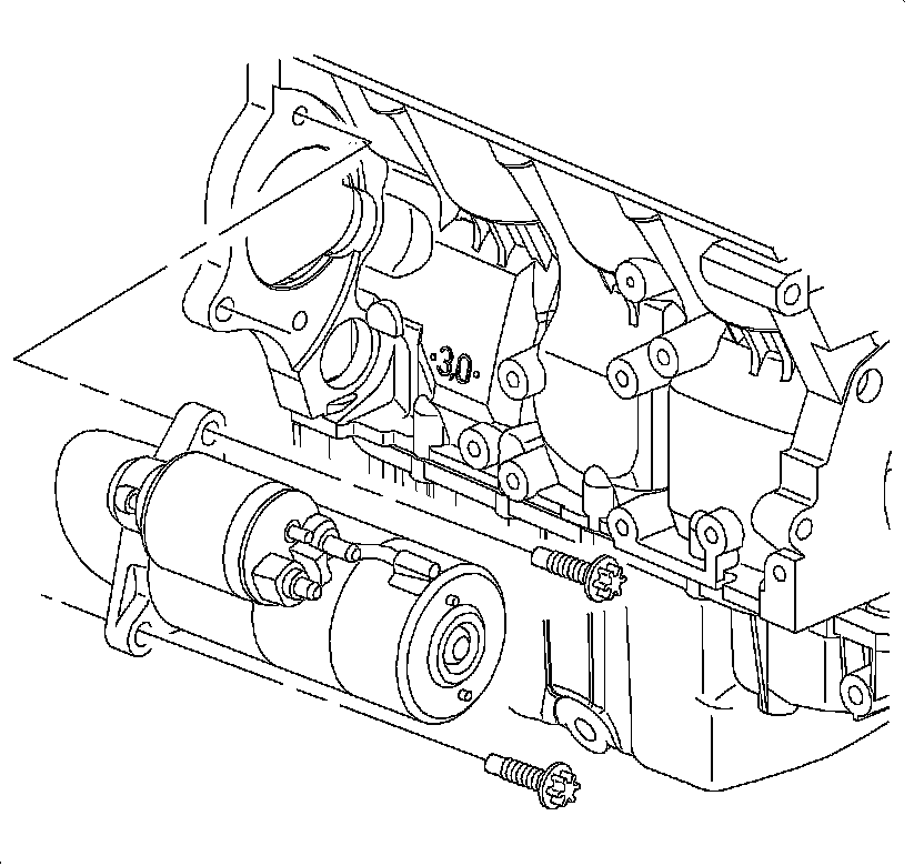 Tighten the lower starter mounting bolts to 40 N.m (30 lb ft).