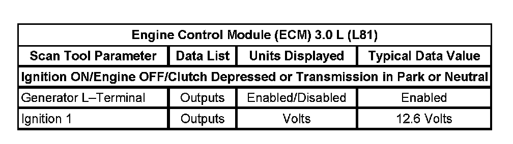 Scan Tool Data List - Engine Control Module (ECM)
