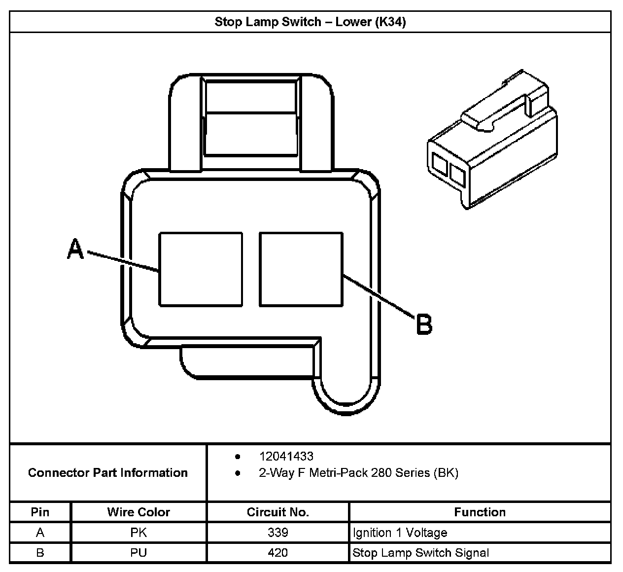 Stop Lamp Switch-Lower (With RPO Code K34):