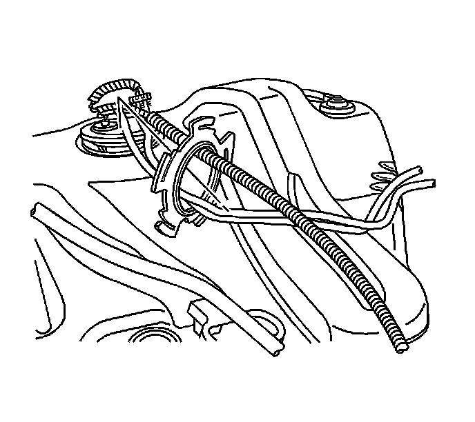 8. Secure the retaining tab on the fuel tank retainer used to secure the fuel pump module pipes in position on the tank.