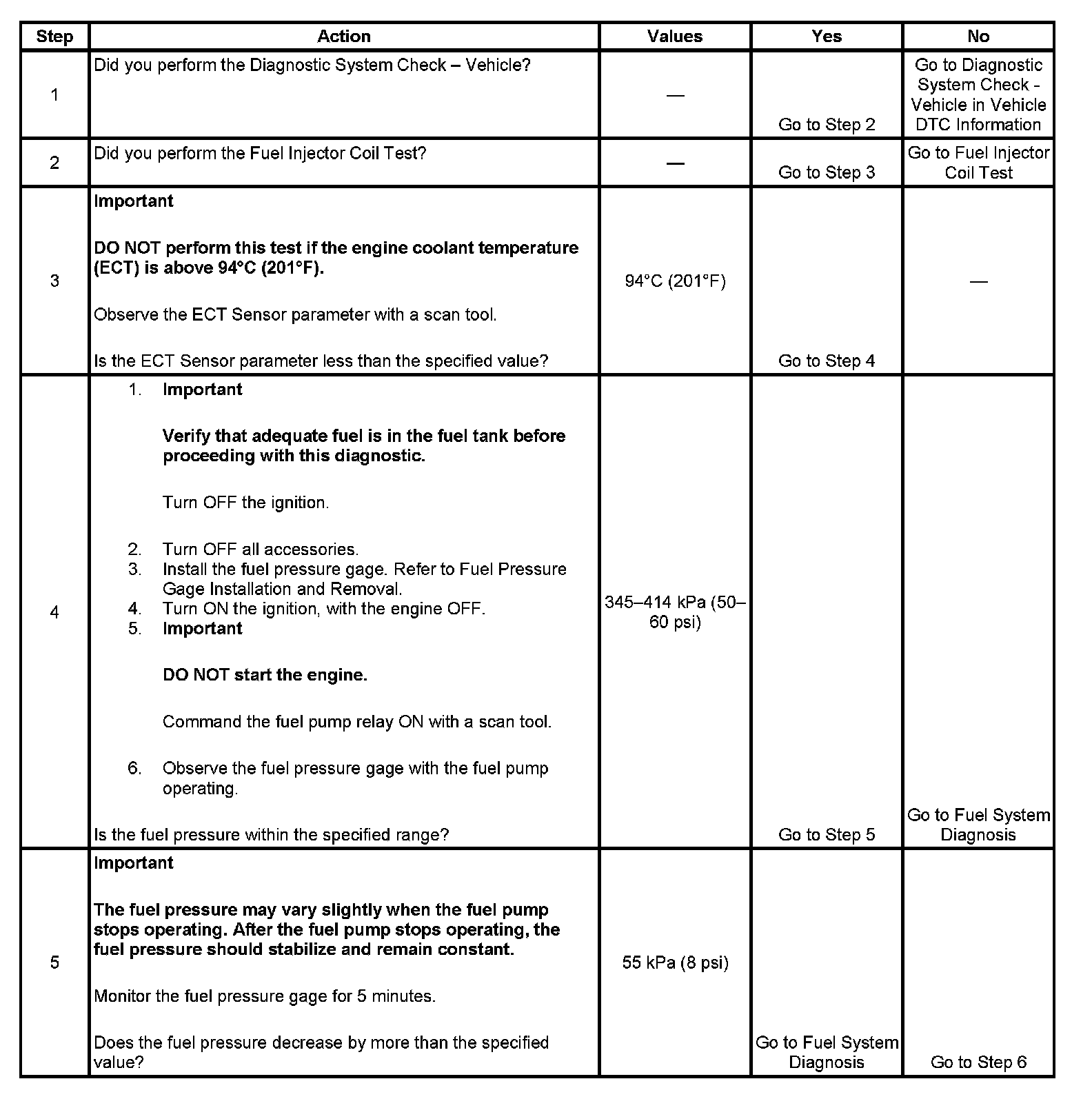 3. The engine coolant temperature (ECT) must be below the operating temperature in order to avoid irregular fuel pressure readings due to hot soak fuel boiling.