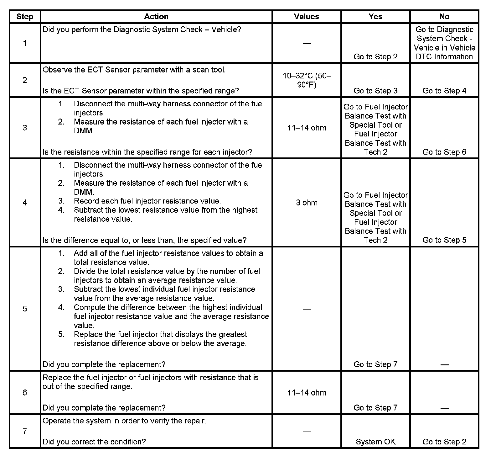 - Perform the fuel injector coil test within the conditions of the customer's concern. A fuel injector condition may only be apparent at a certain temperature, or under certain conditions.