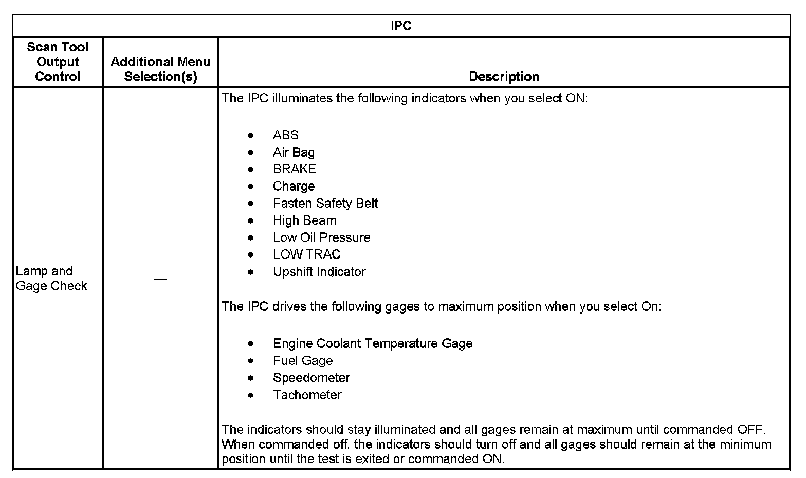 Scan Tool Output Controls - IPC: