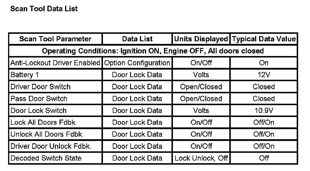 Scan Tool Data List: