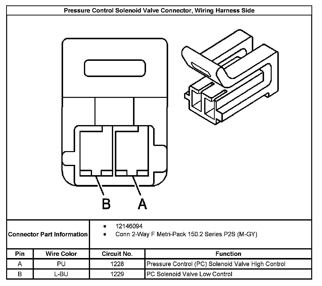 Pressure Control Solenoid Valve Connector, Wiring Harness Side: