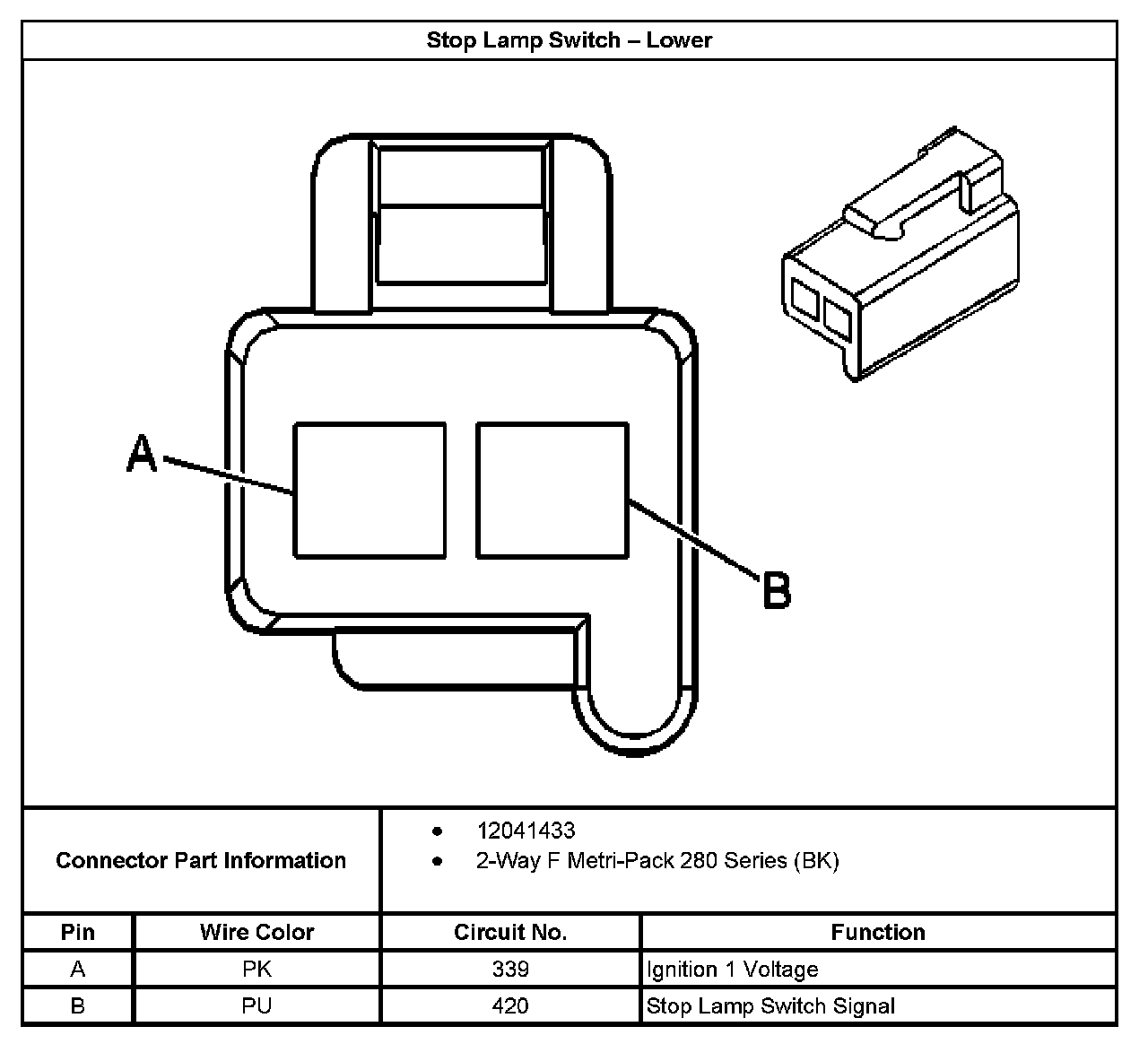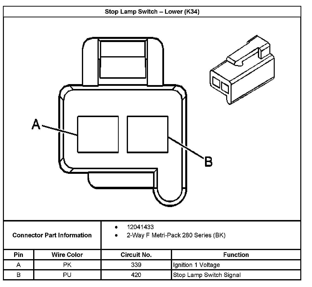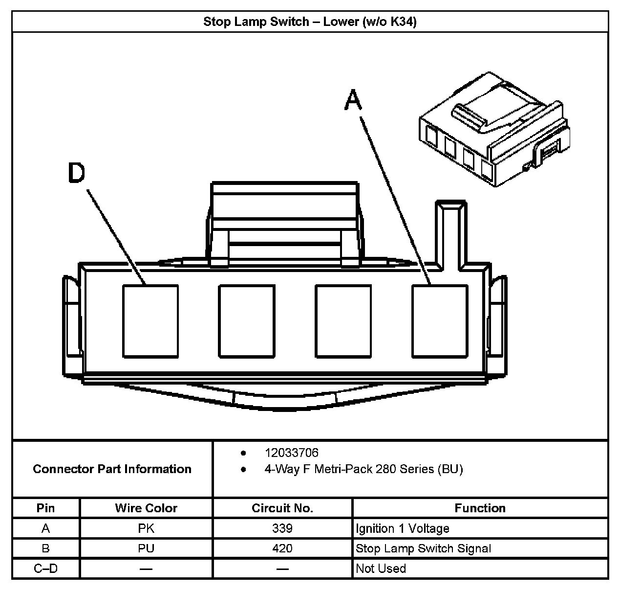Stop Lamp Switch - Lower (With RPO Code K34):
