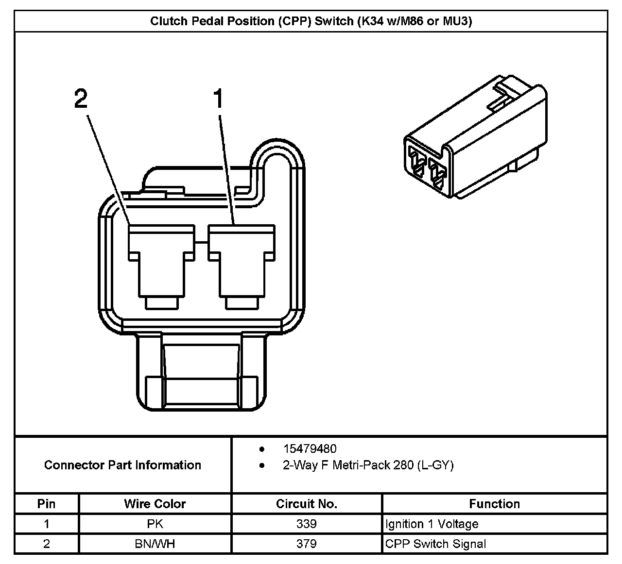 Clutch Pedal Position (CPP) Switch (With RPO Code K34 W/M86 Or MU3):