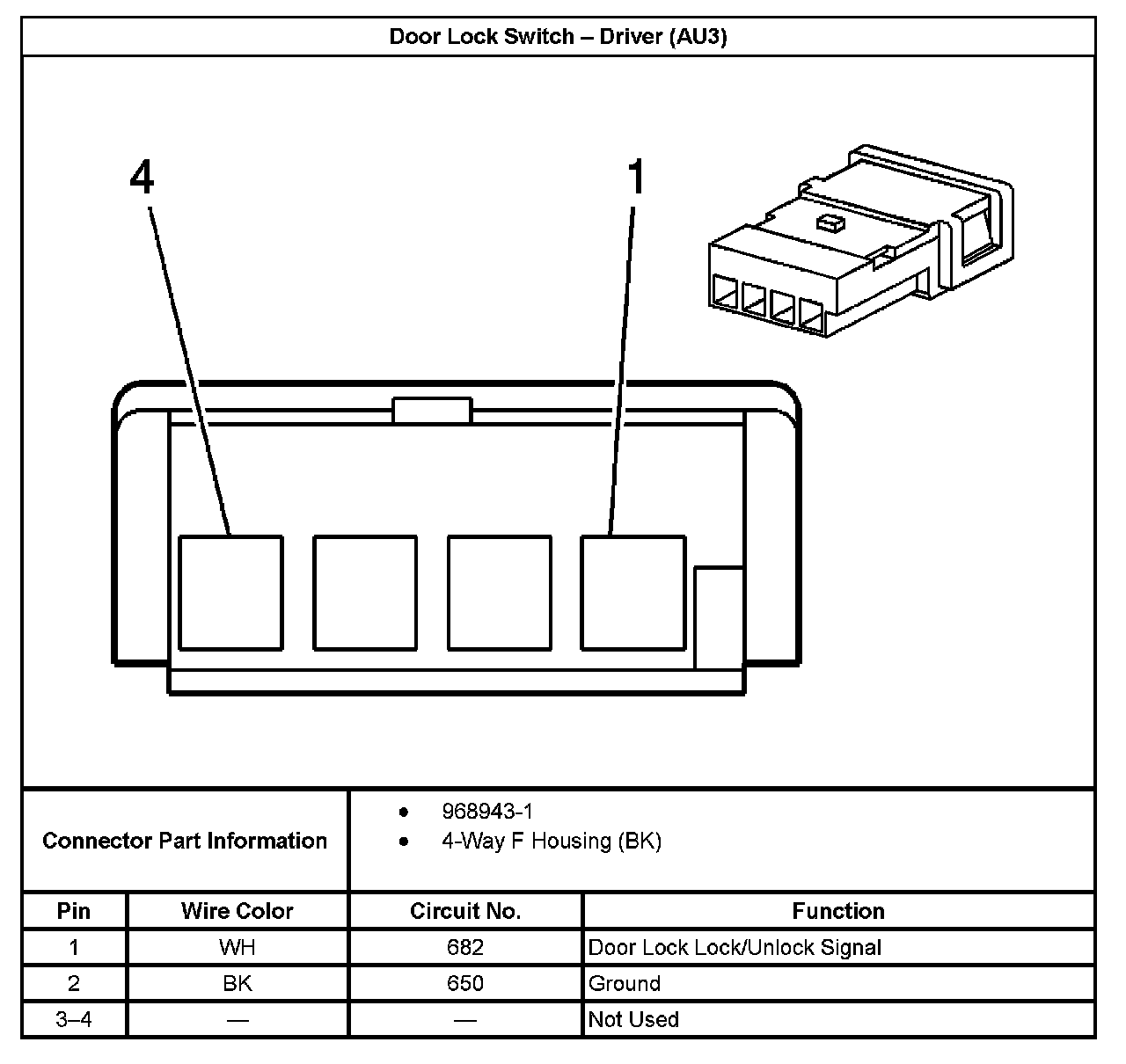 Door Lock Switch - Front Passenger (With RPO Code AU3):