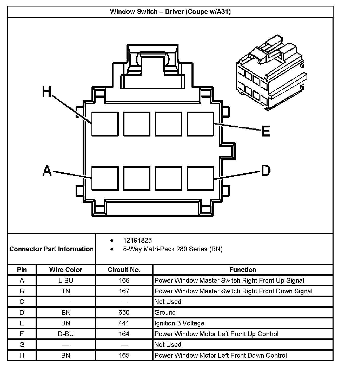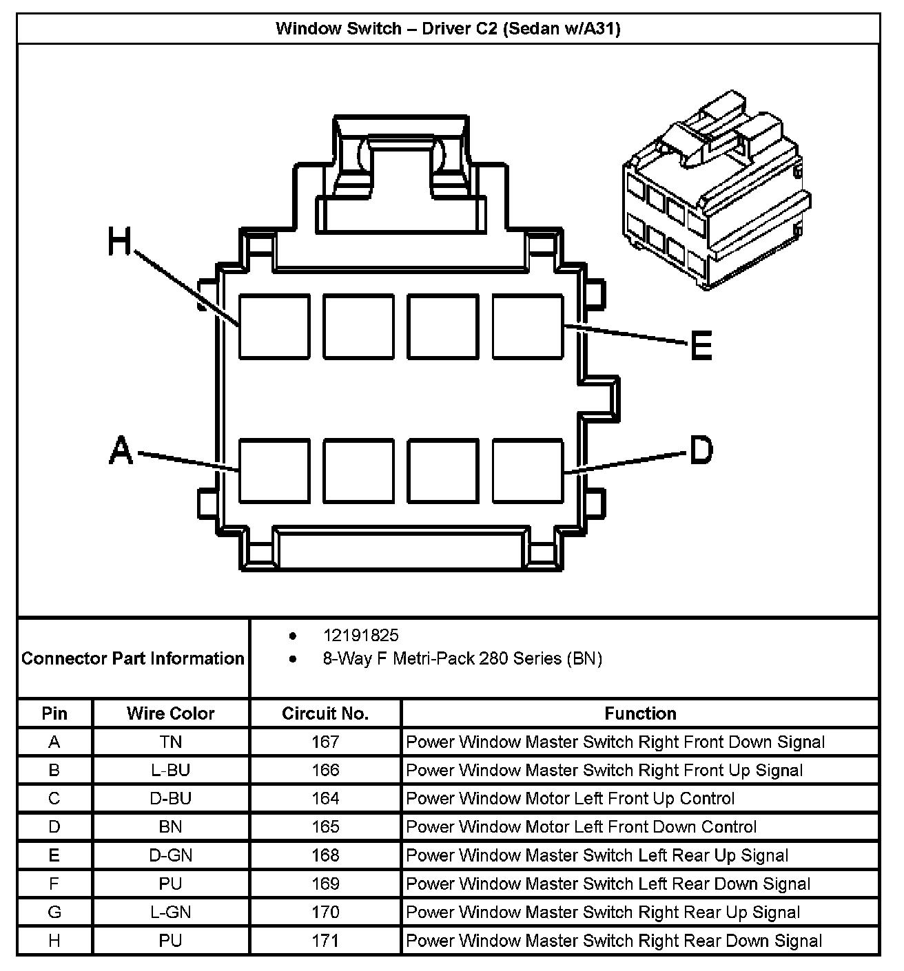 Window Switch - Driver C2 (Sedan With RPO Code A31):