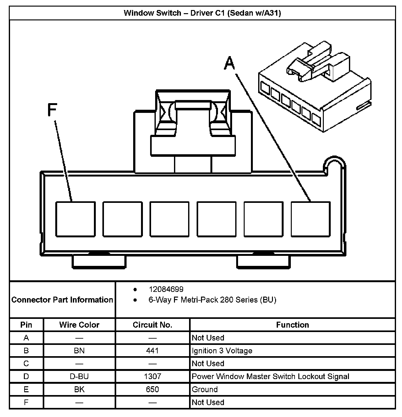 Window Switch - Driver C1 (Sedan With RPO Code A31):