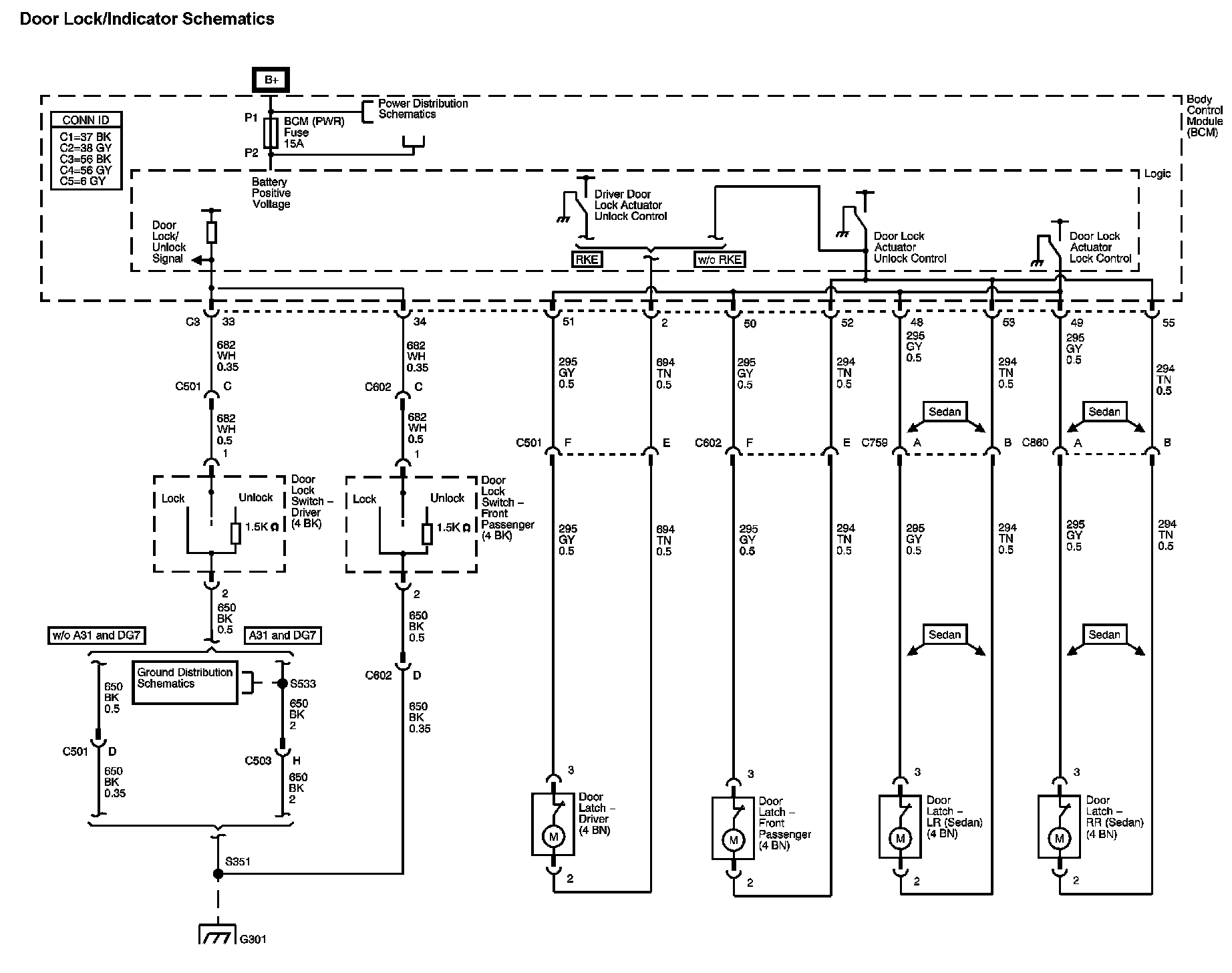 The locations for the Connectors, Grounds, Splices, and Grommets shown within these diagram can be found via their numbers at Vehicle Locations.