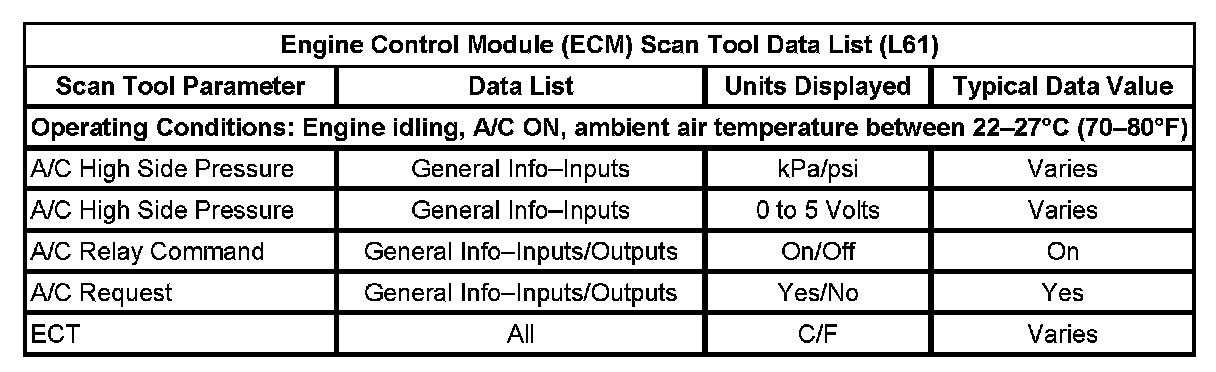 Engine Cont6rol Module (ECM) Scan Tool Data List: