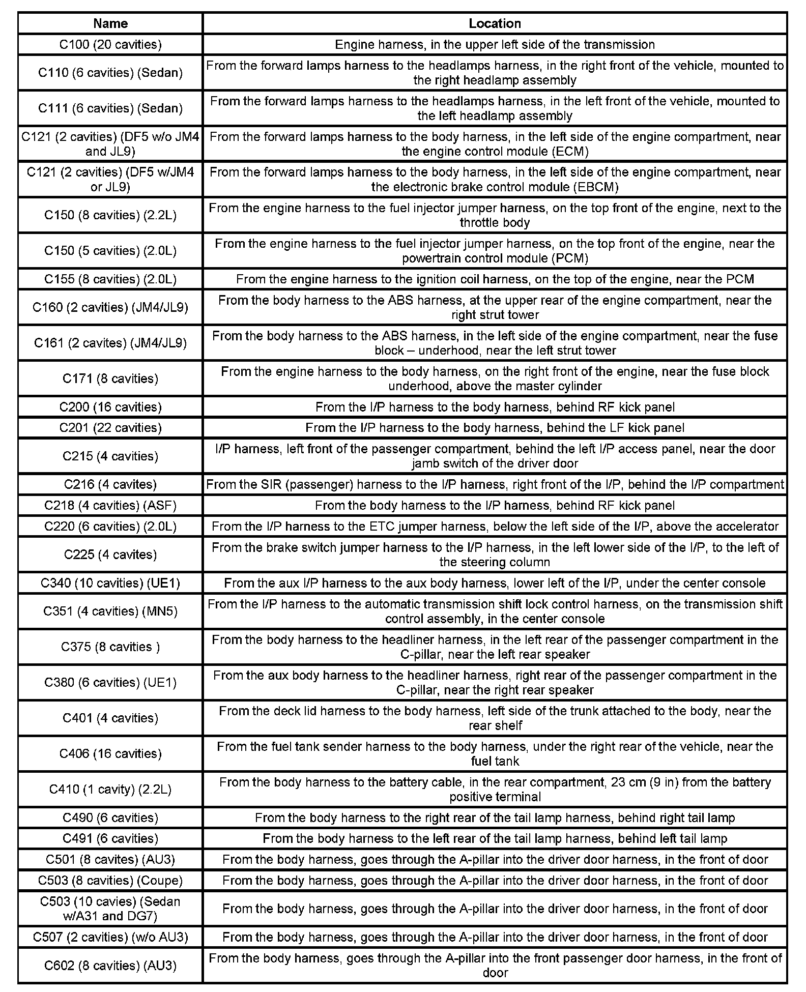 Connector Locations