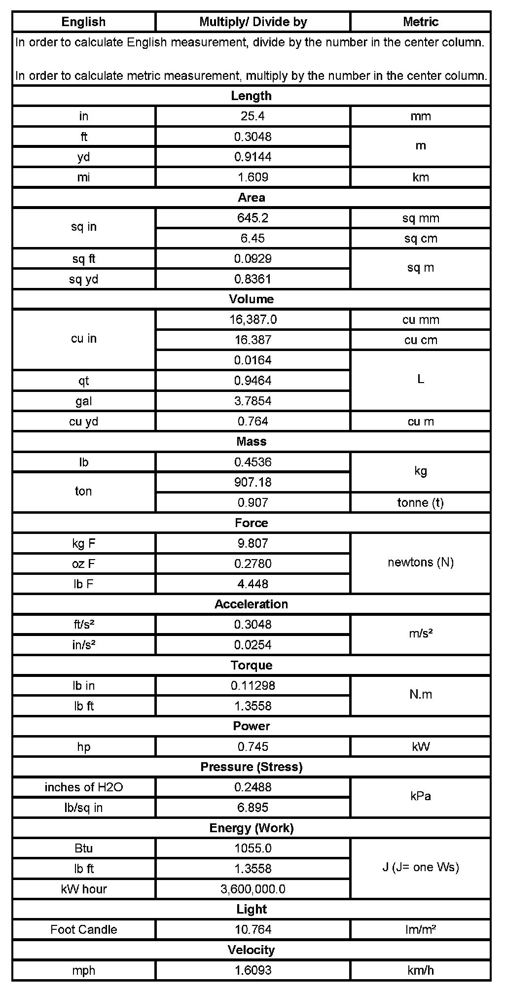 Conversion - English/Metric