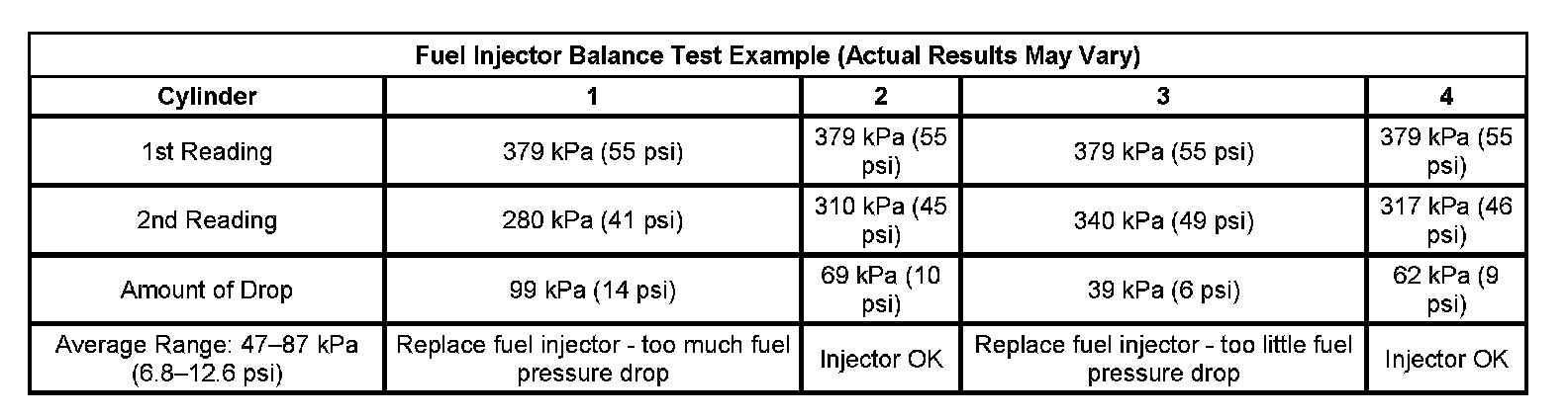 Fuel Injector Balance Test Example (Actual Results May Vary):