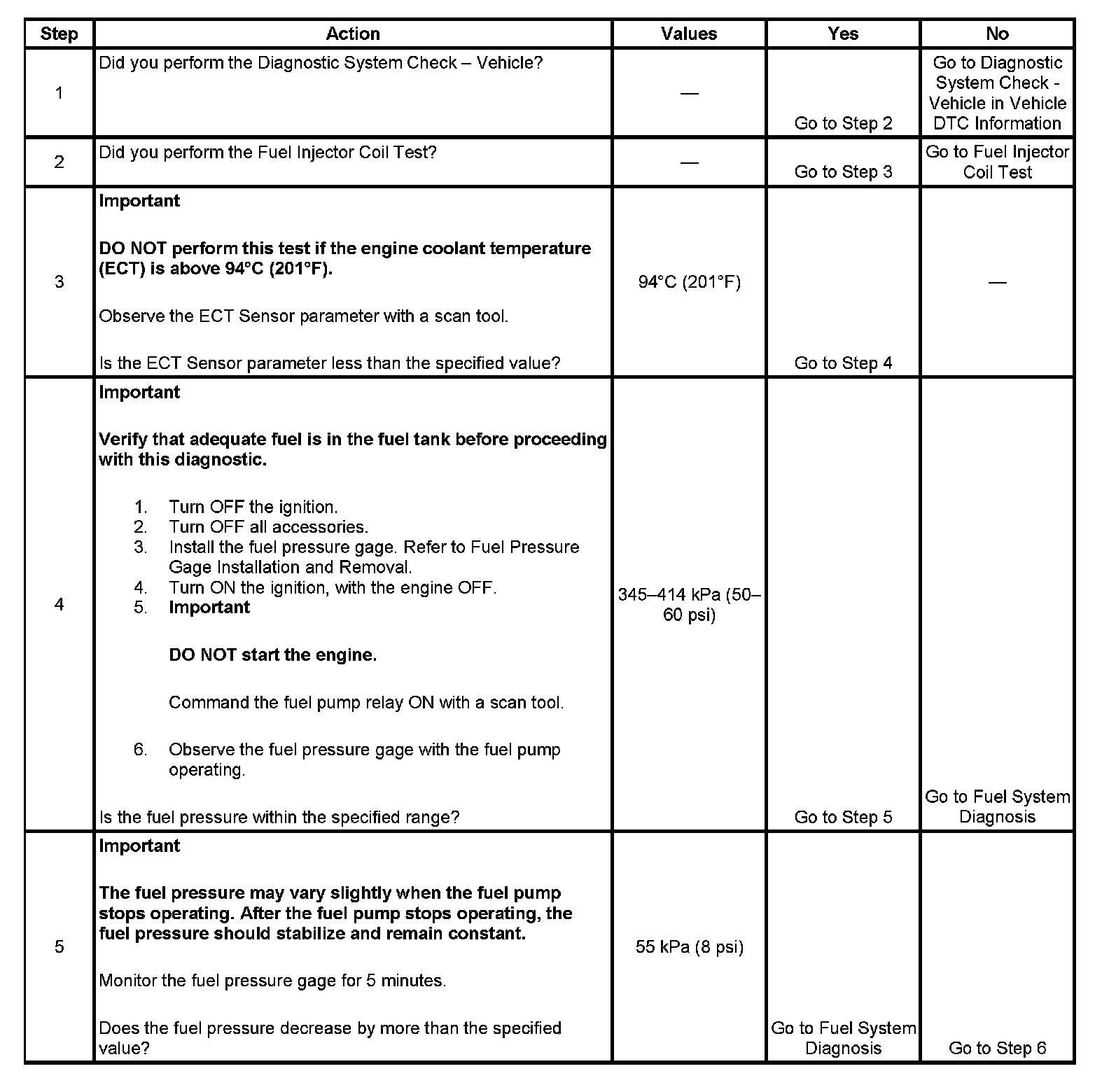 3. The engine coolant temperature (ECT) must be below the operating temperature in order to avoid irregular fuel pressure readings due to hot soak fuel boiling.