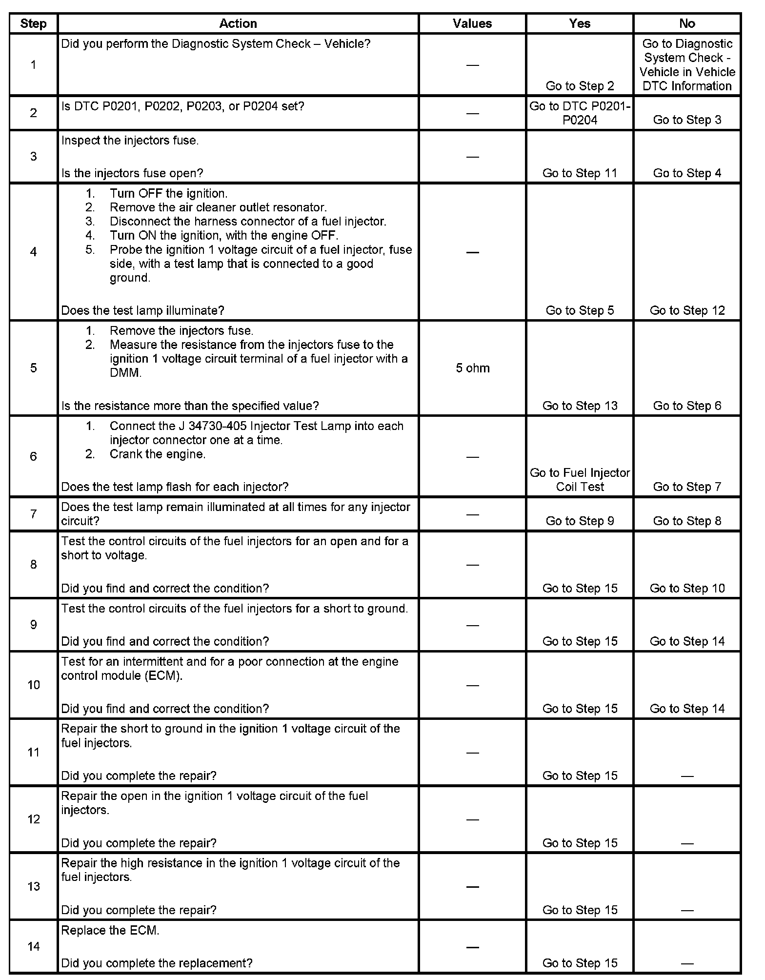 Fuel Injector Circuit Diagnosis