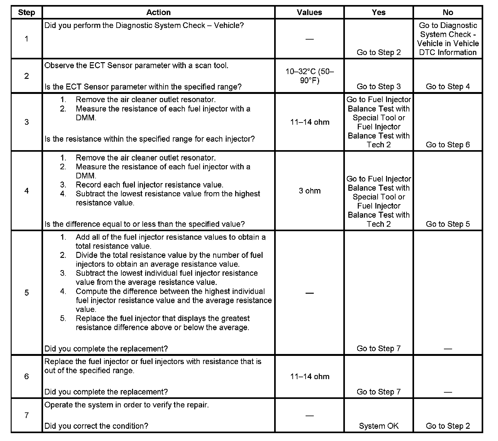 - Perform the fuel injector coil test within the conditions of the customer's concern. A fuel injector condition may only be apparent at a certain temperature, or under certain conditions.