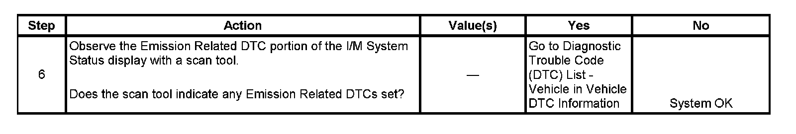 6. The I/M System Status only reports on whether or not a diagnostic has run, not what the outcome of the test was. If any emission related DTC sets after the tests are complete, the DTC will require diagnosis.