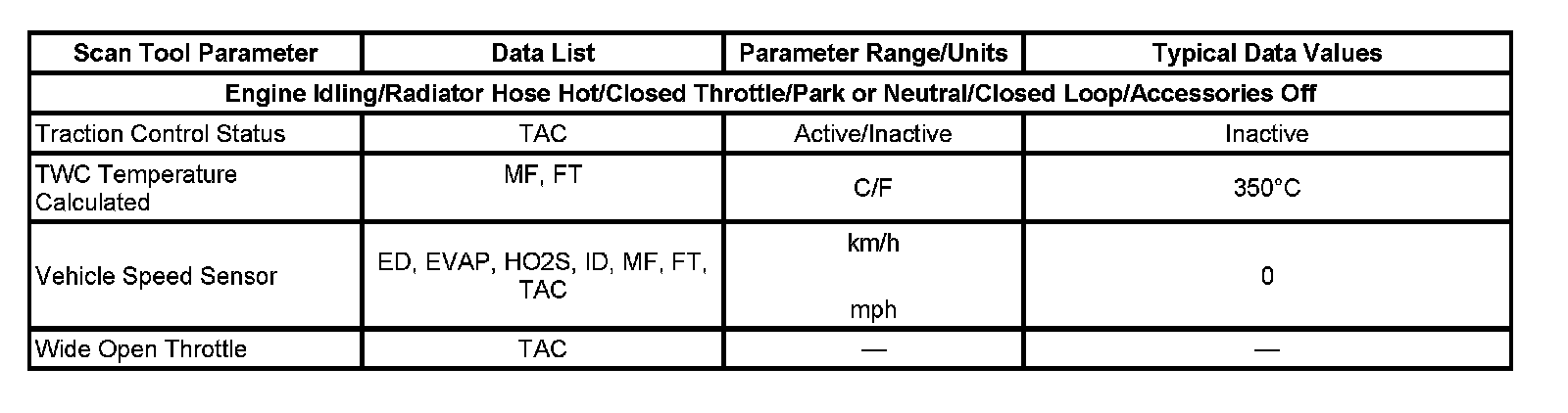 The column labeled Data List indicates where a parameter can be located on the scan tool. Refer to the scan tool operating manual for the exact locations of the data lists. The following is a description of each term listed:
