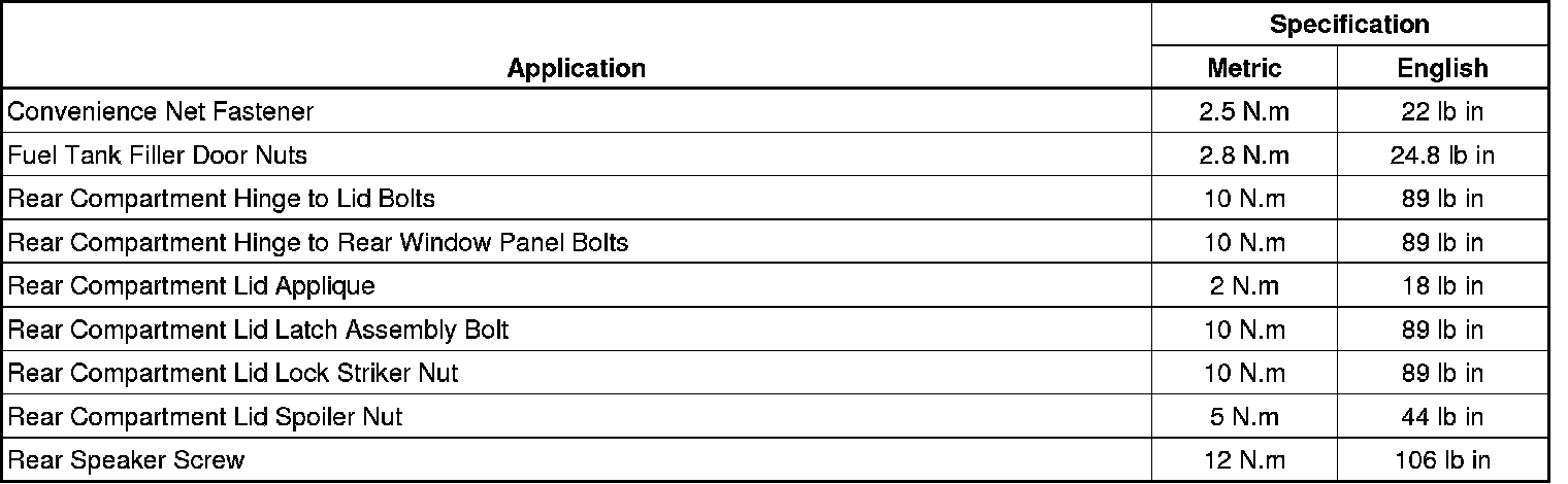 Fastener Tightening Specifications