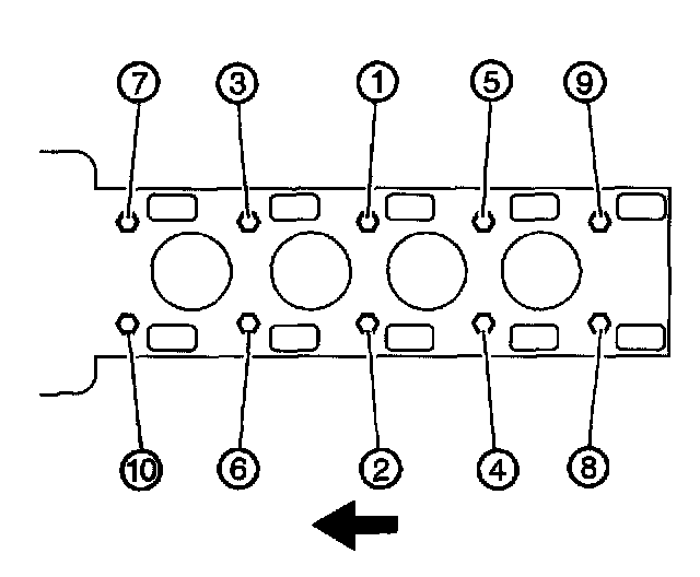 Tighten the front cylinder head bolts to 35 Nm (26 ft. lbs.).