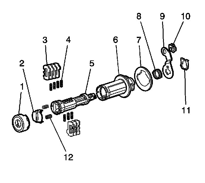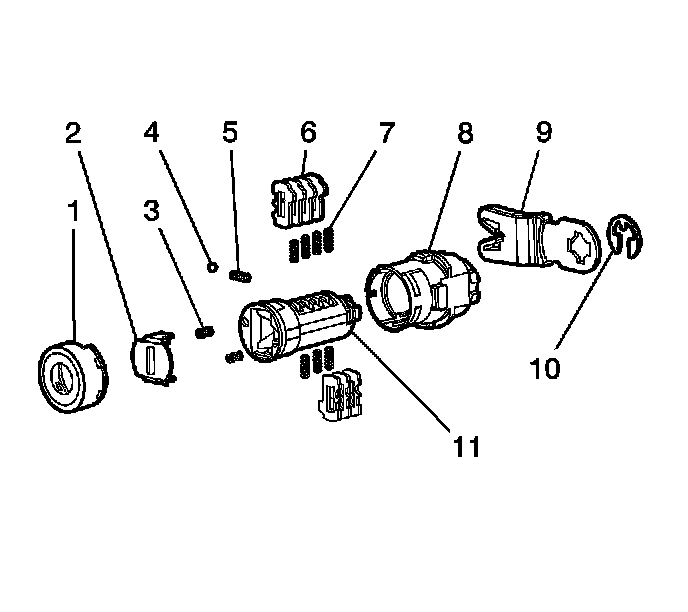 IMPORTANT: The door lock cylinder tumblers are not self-retaining. Hold the tumblers in place when the key is not in the lock cylinder. Hold the lock tumblers in place when performing the next steps.