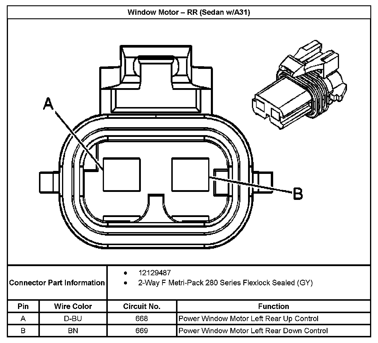 Window Motor - RR (Sedan With RPO Code A31):