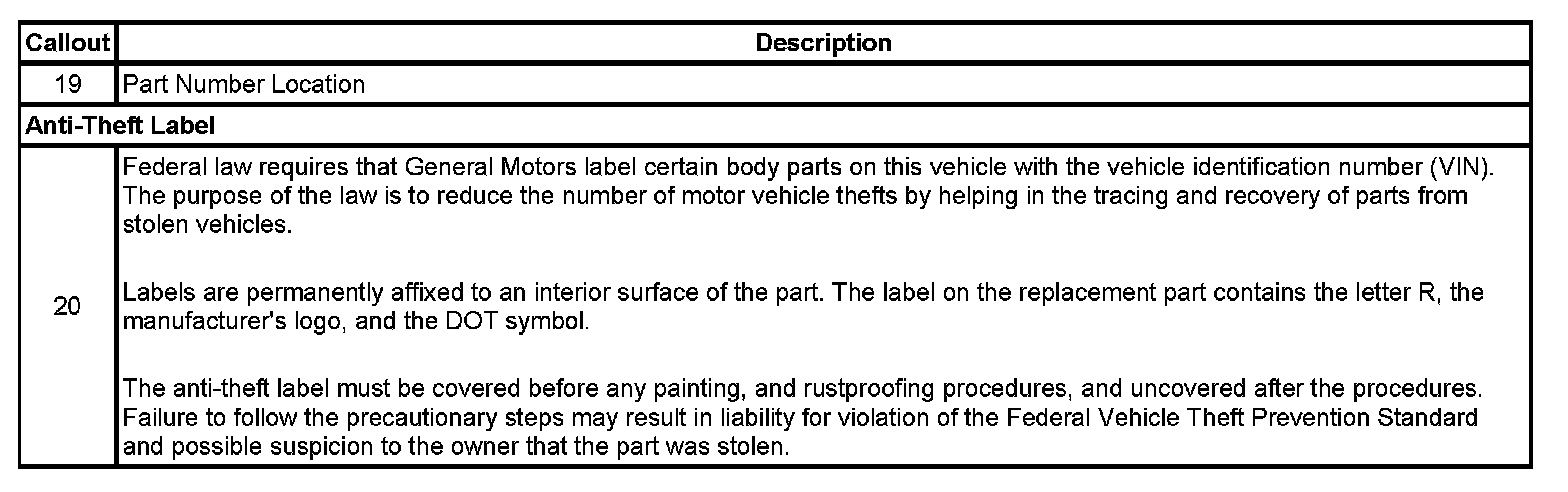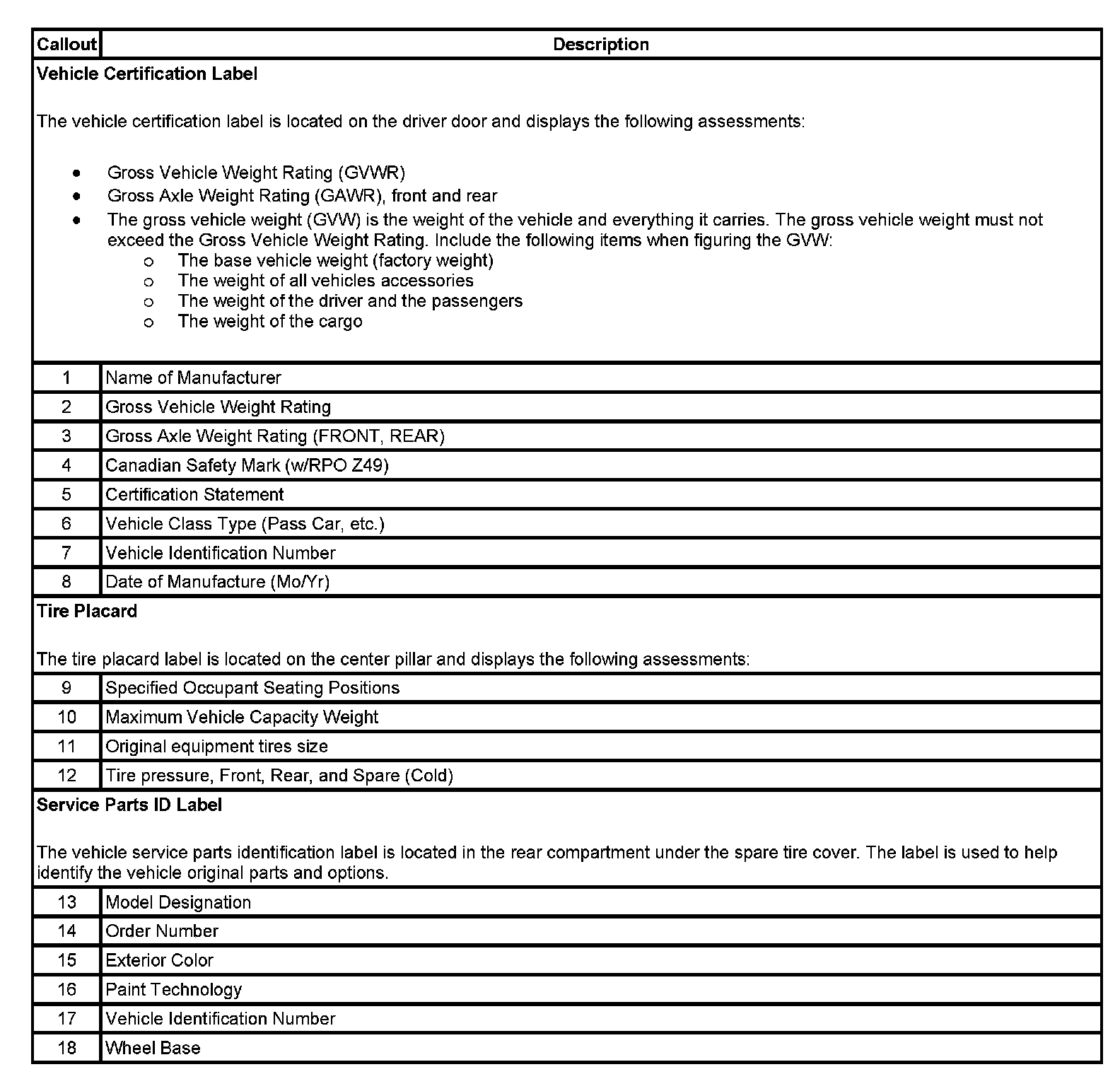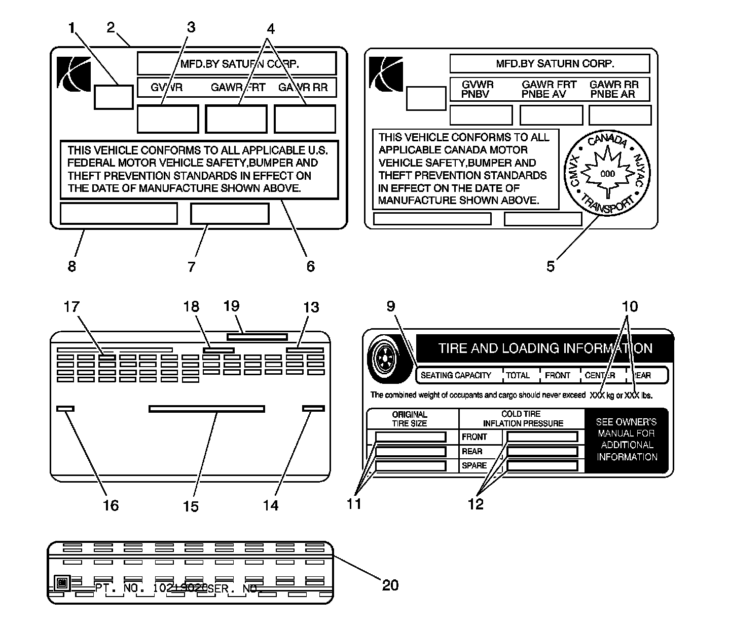 LABEL - VEHICLE CERTIFICATION, TIRE PLACE CARD, ANTI-THEFT AND SERVICE PARTS ID