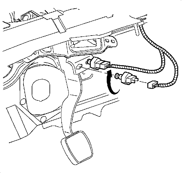 3. Install the cruise brake switch into the bracket and rotate 180 degrees while holding the brake pedal down during installation.
