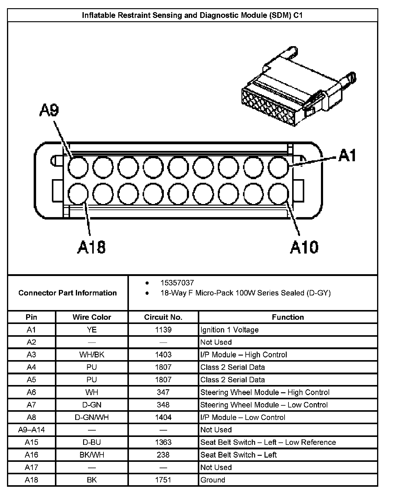 Inflatable Restraint Sensing And Diagnostic Module (SDM) C1:
