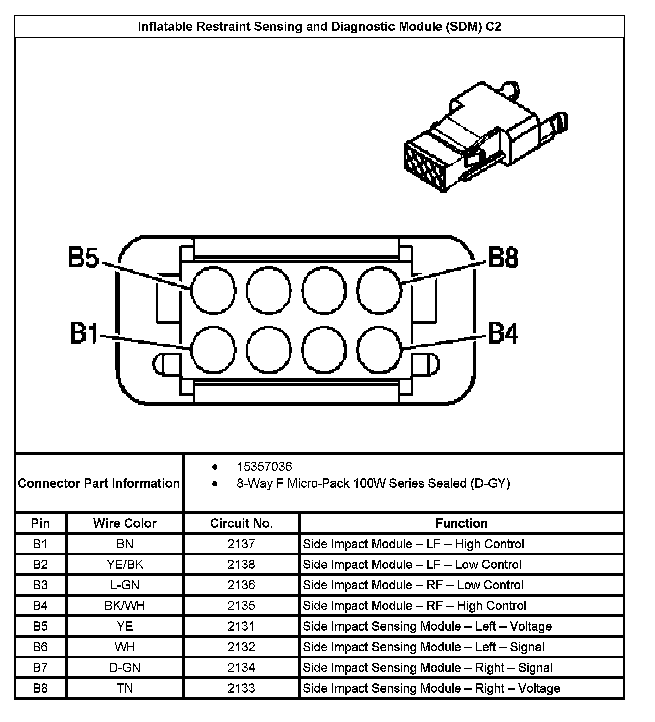 Inflatable Restraint Sensing And Diagnostic Module (SDM) C2: