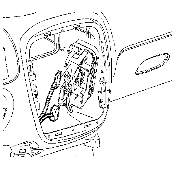 2. Install the cable eyelet onto the HVAC control assembly pin and install the cable housing flag into the slot in the HVAC control assembly until it engages the locking tab.