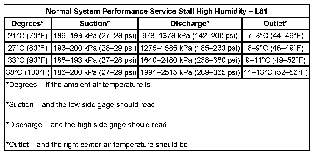 - This chart illustrates the effect the high humidity has on the Saturn air conditioning system. Use this chart to determine the normal system performance under high humidity conditions.