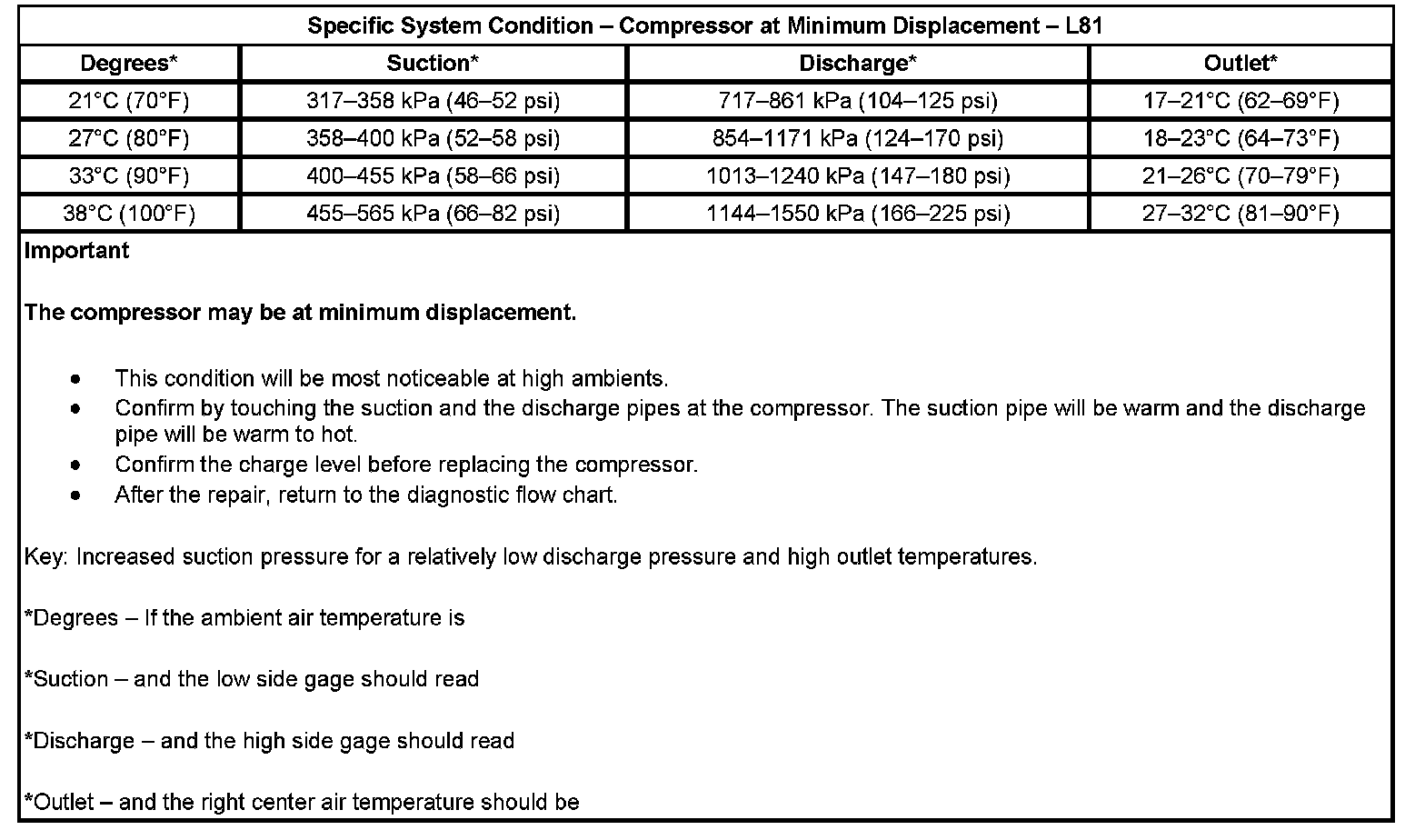 Specific System Condition - Compressor At Minimum Displacement: