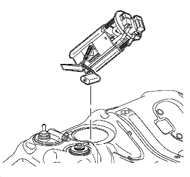 2. Install the new fuel pump with the level sender and the new fuel pump-to-tank seal. Ensure the orientation tabs are aligned.